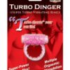 Twice the hummer! Humm Dinger Double Dinger is made of stretchy jelly. The erection enhancer fits around the base of the penis shaft. Two removable 1.125 inches by .5 inch bullets stimulate the testicles and clitoris. Each bullet has easy on off control and last 40 plus minutes. Warning may cause screams of intense pleasure!