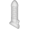Make it big. Slide into the Jacked Up Thick Extender for increased length and girth. Soft and stretchy to perfectly hug your shaft, Jacked Up Thick stretches eight inches from its ball teasing base to a firm head in a sheer, frosted material that looks and feels incredible. The extender's ribbed, studded interior stimulates the penis, while the attached ball strap holds it in place and tugs at the balls for added pleasure with every thrust. <br /><br />Kink by Doc Johnson is an exciting collaboration with Kink.com to create a collection of high quality authentic fetish items suitable for long term practitioners and new initiates alike. From Doc Johnson.