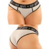 Vibes Buddy Pack – 2 pack – Lace Boyfriend Brief and Lace Thong with "Fuck Off" Elastic.Materials:THONG: 90% Polyamide, 10% Spandex.BRIEF: 90% Polyamide, 10% Spandex. S M, Size: Cup B/C, Bust: 34-36 inches. Waist: 26-28 inches. Hips: 36-38 inches.