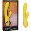 Powerful massager with rippling waves plus flickering teaser. 3 speeds of rippling waves in the shaft. 10 functions of independent vibration, pulsation and escalation in the stimulator. Body-safe Silicone. State-of-the-art memory chip resumes on last function used. Easy push-button control with security travel lock feature. USB rechargeable – charging cord included. Complete charge in 2.5 hours. Runs for 40 minutes on high speed and 2.5 hours on low speed.