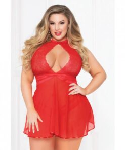 Babydoll Strappy Waist & Panty Criss Cross Waistband Red 1X/2X
