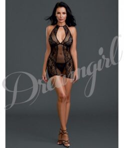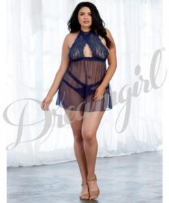 Sheer Lace Open Babydoll Teddy & Lace Leg Garters Illumination Neon O/s
