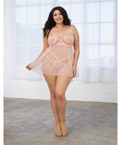 Simply Sexy Stretch Shimmer Mesh Chemise W/panty Pink Champagne 1x