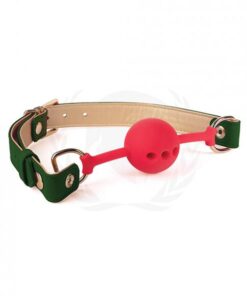 Spartacus Silicone Ball Gag W/green Gold Pu Straps – 46 Mm