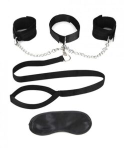 Lux Fetish Collar, Cuffs & Leash Set Black