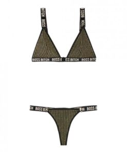 Vibes Boss Bitch Bralette & Thong Panty Black Gold M/L