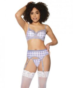 Crystal Pink Buffalo Check Print, Bra, Garter Belt & String Grey/pink Lg