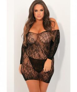 Sheer Fantasy Treasure W/in Strappy Halter Dress W/attached Footless Stockings Black O/s