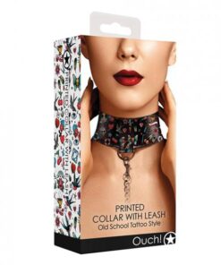 Shots Ouch Old School Tattoo Style Printed Collar W/leash- Black