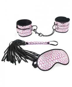 Spartacus Faux Leather Wrist Restraints Blindfold & Flogger Bondage Kit – Pink