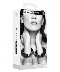 Shots Ouch Black & White Beginner's Furry Hand Cuffs – Black