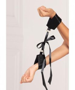 Satin Elastic Cuffs D-ring & Satin Ribbon Tie Black O/s