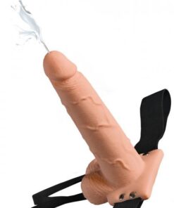 Fetish Fantasy 9 inches Hollow Squirting Strap On With Balls Beige