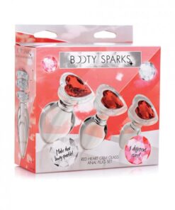 Booty Sparks Red Heart Gem Glass Anal Plug Set