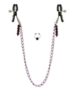Nipple Clamps -Purple Chain with Navel Ring