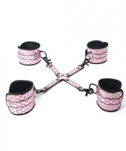 Spartacus Faux Leather Wrist, Ankle Restraints & Hog Tie Pink