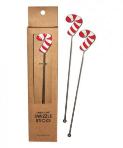 Holiday Candy Cane Reusable Stainless Steel (dishwasher Safe) Swizzle Stick – Pack Of 2