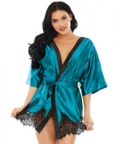 Baby It Is Cold Outside Satin Robe & Panty Blue Black M/L