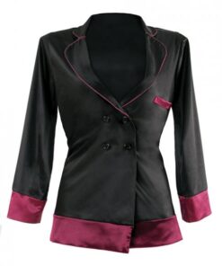 Premiere Marjorie Contrast Cuff Satin Blazer Jacket Black Berry S/M