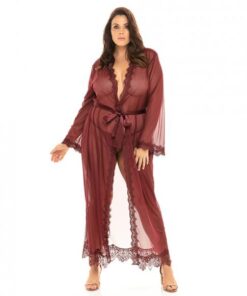 Provence Eyelash Lace Floor Length Robe Zinfandel 1x/2x