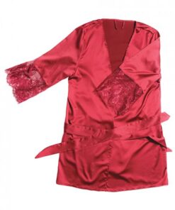 Stretch Satin Robe Lace Details Sleeves Red O/S