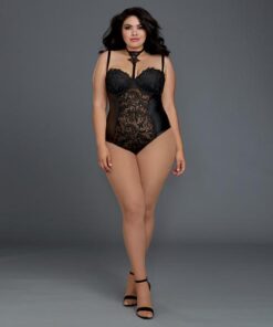 Venice Lace, Faux Leather Teddy Snap Crotch Black 1X