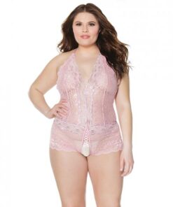 Crystal Pink Halter Crotchless Teddy Pink/silver Os/xl