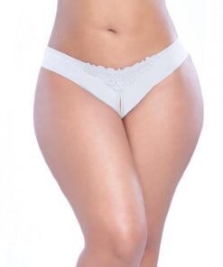 Crotchless Thong with Pearls White 1X/2X