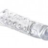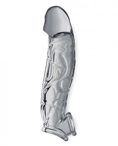 <p>This extender sleeve gives you two whole inches of solid penis to plow into your partner! The realistic texture, featuring a bulbous head and bulging veins, along with a subtle curved shape will deliver a new kind of internal massage. Just lube up and put your entire package through the first hole, allowing your scrotum to go through the bottom hole for a satisfying stretch. <br /><br />The solid 2 inches tip is followed by a hollow interior that allows for a snug and secure fit. This body safe and phthalate free material is compatible with silicone and water based lubricants. Use warm water and mild soap or a toy cleaner to clean after use. <br /><br />Dimensions total length 9 inches, insertable 6.25 inches. Interior diameter 1.2 inches. Exterior diameter 2 inches. Penis and scrotum hole diameter 1.5 inches. Scrotum hole diameter 1 inch.</p>