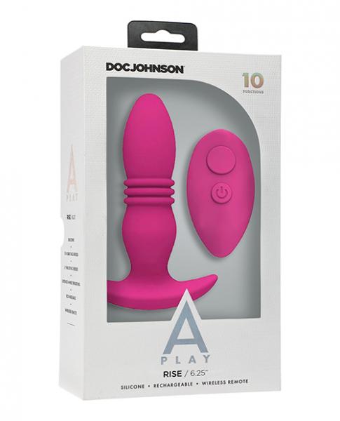 The A-Play RISE is a premium quality vibrating and thrusting anal plug, conveniently controlled directly on the product or via the included wireless remote. A-Play is Doc Johnson's high-end line of performance anal plugs, created with a variety of sizes and special features to promote anal pleasure and exploration for users of every experience level. Each product in the A-Play collection is USB-rechargeable, waterproof, and includes a charging cable and fabric storage bag.