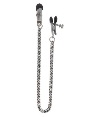 Adjustable Broad Tip Nipple Clamps With Jewel Chain Silver
