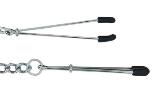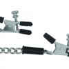 Graceful adornment, easy adjustment. Nipple Clamps are adjustable with the metal slider. To increase the tension pull the clip down. Adjustable Clamp is for nipple stimulation. The nipple clamp is adjusted by a squeeze tweezer style clamp. Nipple Clamps come with the ends tipped for added comfort.