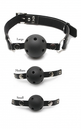 Don't say a word! The Ball Gag Training System is perfect for beginners who are new to being gagged, yet versatile enough to satisfy a pro. The 3-gag training system allows you to start with a small gag and gradually work your way up to the larger one – and go from mild to wild as you progress! Each gag is interchangeable using the snaps, made from non-toxic plastic and fitted with holes to make breathing easy. The sturdy black leather strap easily adjusts to fit most sizes, giving you instant control over when, and how often, your lover speaks. You'll teach your partner the meaning of submission in no time at all – remember practice makes perfect! Ball widths: 1.5” (3.5 cm) 1.75” (4 cm) 2” (4.4 cm)