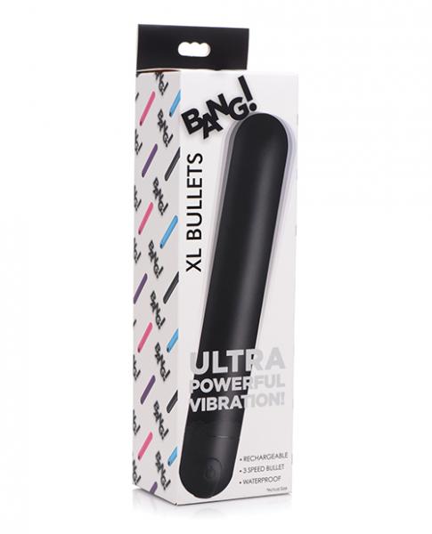 Bang yourself with this extra-large bullet vibrator! Seduce your senses with the silky-smooth material as you play with 3 powerful speeds of vibration, both externally and internally. The extraordinary motor will blow your mind. Tease yourself towards something big and beautiful, enjoying every jolt through your core as you are taken closer and closer to the edge… until BANG! Playing with a partner? Show them how you like it, then let them take control – or find out where they like a little vibration!Both rechargeable and waterproof, this pleasure tool is always ready, even for a dip in the pool or a steamy shower. Made of phthalate-free ABS plastic, it is compatible with all types of lubricant and is non-porous for an easily clean with mild soap or toy cleaner.Measurements: 8.5 inches in total length, 7 inches insertable length, 1.4 inches in diameter.Material: ABS plastic.Note: Rechargeable via USB.