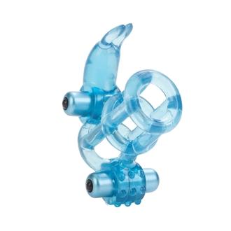 The Basic Essentials Double Trouble Vibrating Support System from Cal Exotics. This comfortable and stretchy enhancer features a removable and reusable micro-stimulator. Made of TPE (enhancer) ABS with Metallic Plating (micro-stimulator). Batteries included (3 watch, 6 included). 2.5 x 3.