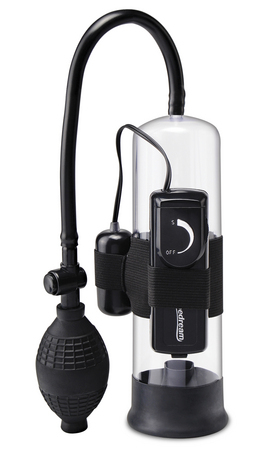 The Beginner's Vibrating Pump from Pipedream will give you the size and confidence you have always dreamed about without any harmful side effects. With each squeeze of the medical style pump ball, your pleasure rod will grow bigger, thicker, and swell with power. Once you penetrate the smooth, flexible PVC opening, you will quickly discover throbbing, rock-hard erections that feel great and last and last with no midway performance letdowns! The clear vacuum tube allows you to watch your cock grow, and the quick release valve relieves pressure with a push of the button. <br /><br />Choose a speed on the vibrating bullet and enjoy extra stimulation while you pump up your pleasure rod. Beware of imitations! Only this potent pump can deliver results that truly satisfy! When you are done, simply detach the cylinder from the vacuum hose and restore it to like new quality with Pump Worx Toy Cleaner and warm water.