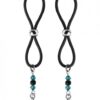 Clit Clamp Double Loop with Heart Charm & Blue Beads from the Bijoux Charming Glimmer of Fuchsia Series. A luxury colletion of clitoral adornment. Each item has been carefully chosen to seusually accentuate your clitoris and provide sensations. All clips are presented in a beautiful open window box perfect for gifting in. Non-adjustable body jewelry.