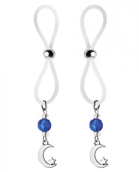 Bijoux de Nip Nipple Halos with Moon and Star Charm from PHS international. Color Blue, Clear. Made using body safe, phthalate free, latex free materials Silicone nipple loops.