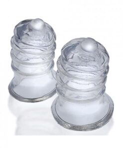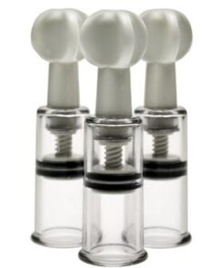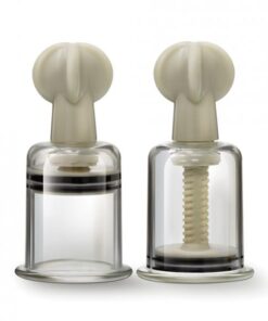 Black Maxxx Powerful Twist Nipple Suckers from Master Series. This pair of nipple suckers are ideal for anyone desiring real nipple suction. Simply place the base of the sucker firmly against the nipple to create a seal, then twist the easy grip control cap clockwise until you have reached the desired level. These sturdy nipple toys are very strong. To release suction, just turn the cap backwards. Do not want to stop at just nipples? These ultra powerful suction devices can go anywhere your imagination desires. It is your domain. Measurements: 4 inches in total length, 1.17 inches inner diameter. Material: ABS plastic.