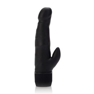 This 5in X 1.25 dong is velvety soft and down right sexy! The clit arouser is perfect and the shaft is ridged for your pleasure! It's soft, pliable and incredibly stimulating with multi-speed power. Requires 2 AA size batteries, not included. This Black Velvet Massager is totally waterproof for fun in and out of the water!