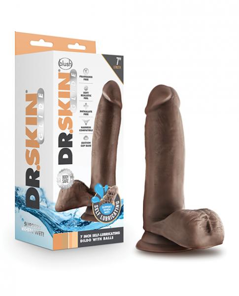 Blush Dr. Skin Glide 7" Self Lubricating Dildo – Chocolate