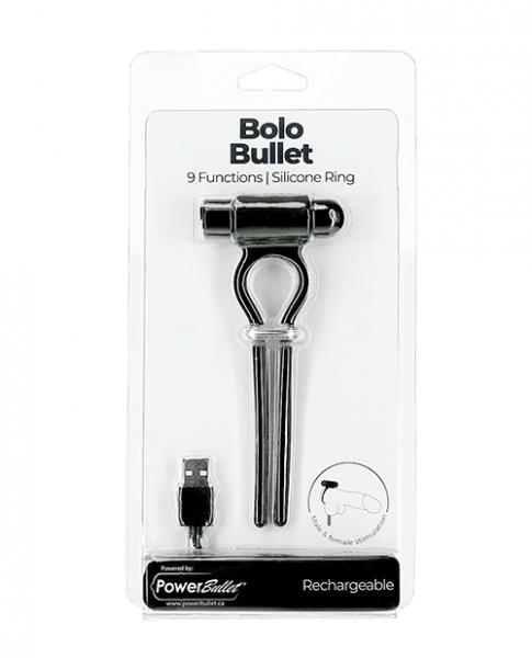 Tie up your package with a customized, secure fit paired with deep and rumbly vibrations! Bolo Bullet is PowerBullet's adjustable cock tie made from premium, body-safe silicone and is designed with comfort in mind.Take full control of erections by simply slipping this device over the penis and balls and using the stylish slider to keep everything in place.Perfect for couples or solo play, the removable bullet features 9 diverse functions that take the vibrations from mild to wild – whatever you're in the mood for! When strapped in the Bolo Bullet, the experience is enhanced for both partners as the bullet becomes a clitoral stimulator.There's no right way to use the Bolo Bullet, as it is a versatile product aimed to maximize pleasure for both partners and provide the perfect customizable fit. Worried about getting wet? Don't be – the Bolo Bullet is 100% waterproof, so go ahead and take playtime anywhere, including the shower or the pool!Travelling is easier than ever with the bullet's built-in travel lock option for ensuring vibrations never randomly go off in your luggage, as well as its USB recharge port for pleasure and power that is ready whenever you are!Key Features: Vibrating Cock Tie. Fully Adjustable. Silicone.Removable Vibrating Bullet.9 Functions.Waterproof.Travel Lock.USB Rechargeable.Dimensions: Length: 5.11" / 13 cm, Width: 2.3" / 6 cm, Height: 0.7" / 2 cm.