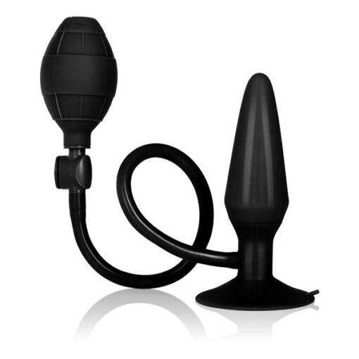 Inflatable plug with superior suction cup base. Features an easy squeeze bulb and quick air release valve. Made from silicone probe, hose, bulb, ABS plastic release valve. Measures 4.5 inches by 1.5 inches before inflation. From California Exotic Novelties.