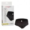 The Boundless Boxer Brief Harness is an ultra-comfortable, easy wear harness designed with powerful performance and comfort in mind. This classic harness has a supportive extra-wide waistband, soft stretchy material and internal probe straps for the ultimate support. Enjoy easy access to your favorite probe with the accommodating double panel interior design. The durable, reinforced O-ring stretches to accommodate your favorite packer, vibrator or dildo.Beginners and expert users alike will love frustration-free pleasure with this easy-to-wear harness. Simply secure your favorite probe, slip into the extra stretchy waist and thigh straps and dive deep into passionate penetration or enjoy comfortable all-day wear. Enjoy easy clean up by machine washing and hanging to dry. Size Small to Medium."
