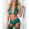 Simply sexy, perfectly sweet this set will make him smile. Triangle bra with crisscross ribbon and O-ring detail pairs with a matching garter thong. Rhinestone charm detail adds a bling. Includes lace garter.Hand wash separately in cold water/ Do not bleach/ Line dry. Fabric: 88% Polyamide 12% SpandexOne Size, Bust: 30in.-36in. A-C cup. Weight: 110lb-165lb. Waist 24in.-29in. Hip: 34in.-39in. Size: 0-10.