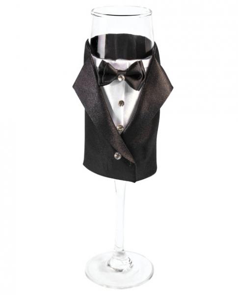 Dress up those champagne flutes at your party. Tuxedo for the Groom. From Forum Novelties.