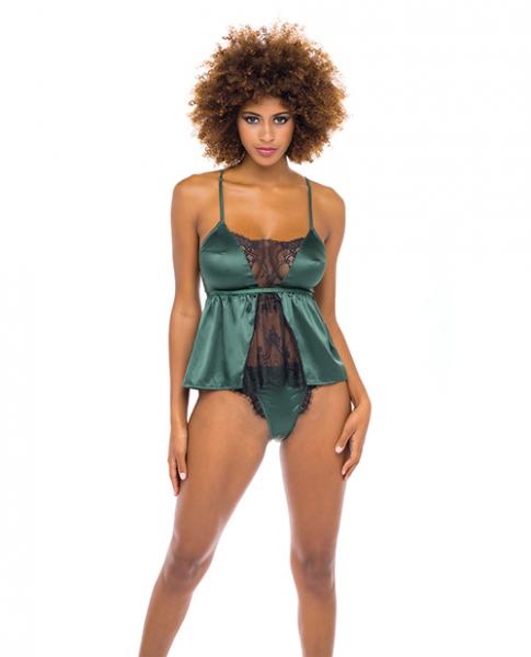 Cammi Eyelash & Satin Cami W/tanga Panty Dark Green/black L/xl
