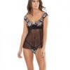 Babydoll & G-string set. Sheer eyelash lace. Adjustable criss-cross straps.Includes matching sheer lace mini G-string.Fine Lace.One size. Weight: 120lb – 150lb. Bust: 36in. – 38in. Waist: 28in. – 30in. Hip: 38in. – 40in. Cup: B. Dress: 6-12.