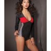 Contrasting Lace & Mesh Chemise, Garters Black/Red XL