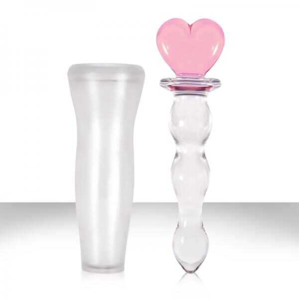 The Crystal Heart of Glass from NS Novelties. This beautiful piece comes in a decorative holder for those who like a bit of discretion in their play toys. A sensuously shaped wand with a heart top decoration intended for that special someone in your life. The entire Crystal collection is made of 100% hand-blown, premium Borosilicate glass. These items are of the highest quality, and represent the most vibrant and durable glass products available today. Crystal items can be heated/cooled to personal taste. 14.10 oz.